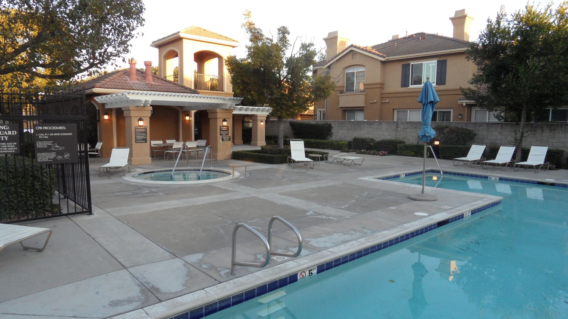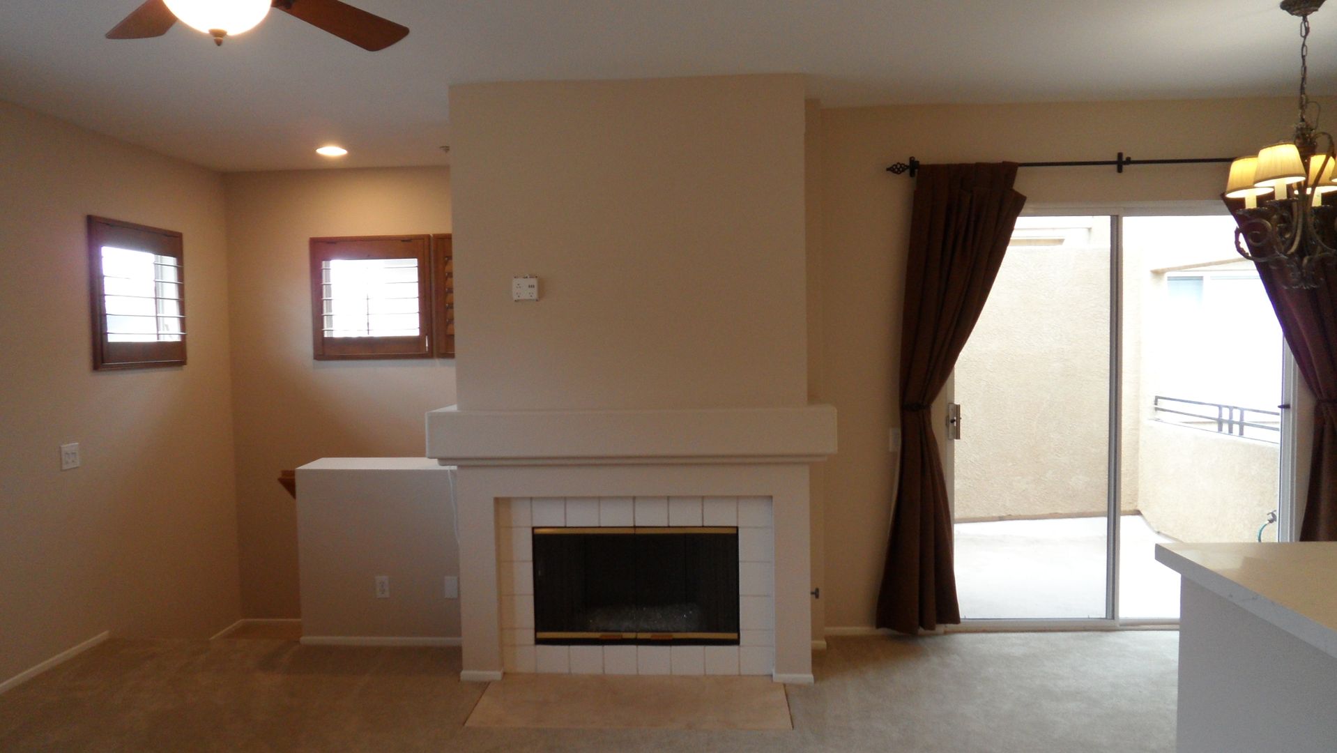 Very clean & spacious 2BR, 2BA two-story, all upstairs end unit Condo located in the “Bluffs at Belmont” community in the hills of Orange with no one above or below you. Two-toned paint, A/C, ceiling fans, plantation shutters, and plush carpeting throughout. Bright, open living room with fireplace and dining area with chandelier. Kitchen features canned lighting, quartz countertops, 5-burner gas cook-top, built-in microwave oven, dishwasher, and refrigerator. Cozy patio deck off dining area through slider-door with nice view of community pool area. Master bedroom with private bath, dual sinks, and two closets. Attached single-car garage with automatic opener and direct access into condo with storage closet and water softener system. Laundry hook-ups inside unit. Washer & dryer included. Community pool, spa, and playground just steps away from the unit. Convenient to freeways, restaurants, shopping, and Belmont Park. Trash service included.