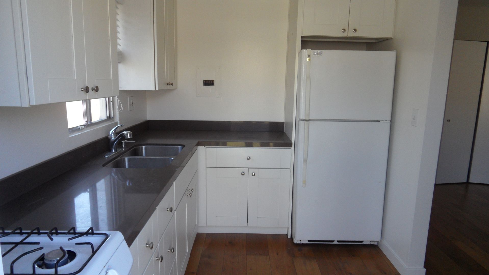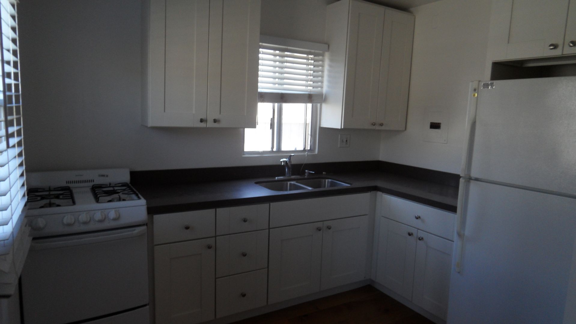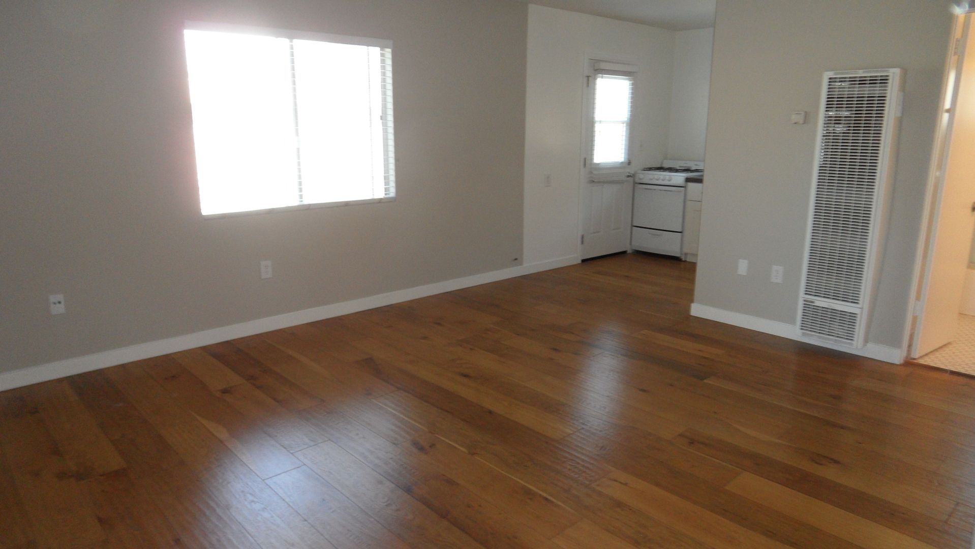 Eastside Costa Mesa ground level Studio, wood flooring, recessed lighting, updated kitchen with stone counter, stainless steel sink, gas stove, refrigerator, bathroom with tile floor and shower, significant back yard. Detached single car garage. All utilities included in rent. This unit also has Mini split AC, and Washer dryer in garage included with rent, but without warranty.