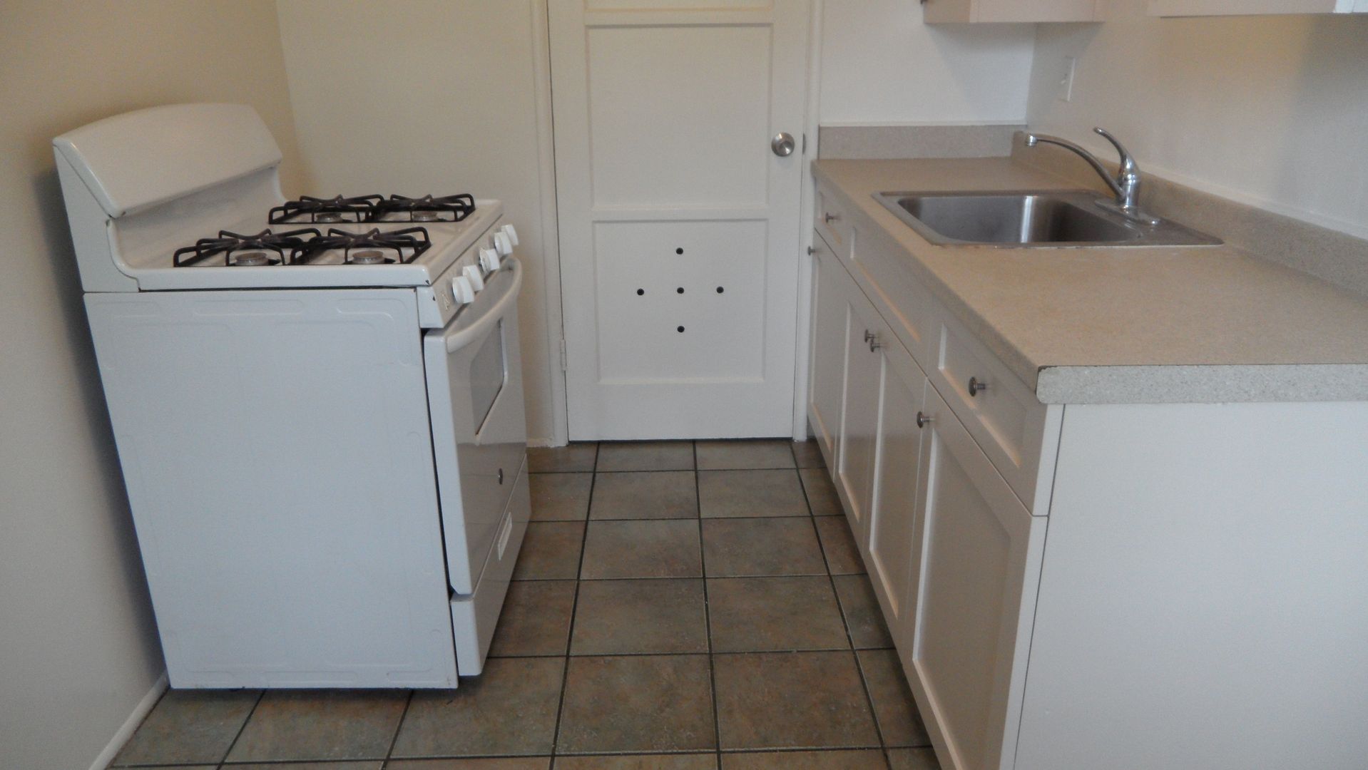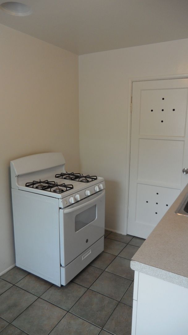 Ground Level, 1 bedroom, 1 bathroom apartment. Freshly painted throughout; Kitchen with gas cooking, Tile flooring, living room and good sized bedroom. Bathroom with new flooring and vanity, with shower/tub combo. 2 assigned parking space in ally behind unit; water and trash included, Tenant pays electric and gas. No laundry on site.